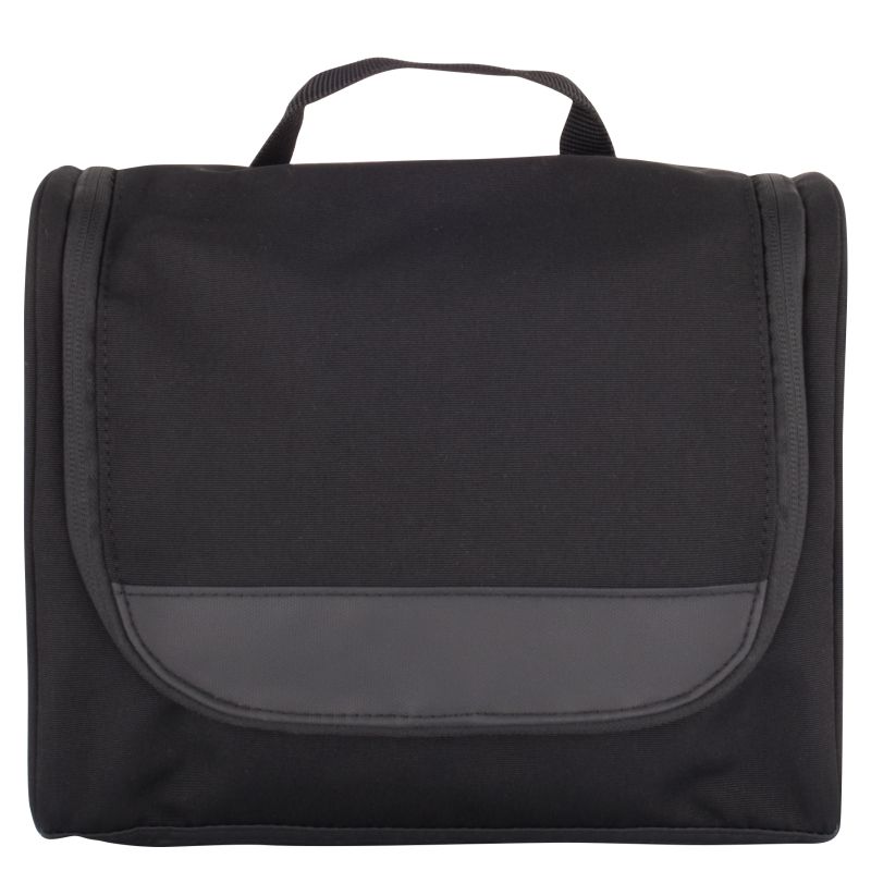 Moderni toalettilaukku, jossa paljon tavallisia taskuja ja verkkotaskuja. Takana suuri vetoketjullinen tasku, jossa tavarat ovat nopeasti saatavilla. Kantokahva ja koukku avoimen laukun ripustamista varten. Mitat ja tilavuus: 25x19x10 – 5 l