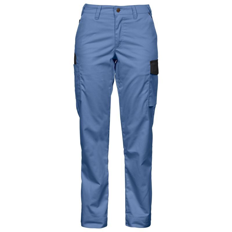 Kevyet työhousut, joissa moderni leikkaus, reisitaskut ja läpälliset takataskut. Oikean puolen taskuun saa kätevästi kynät ja työkalut. Kokojen C32–C50 pituutta voidaan säätää. Ratkomalla lahkeensuiden punaiset ompeleet lahkeita voidaan pidentää 5 cm.