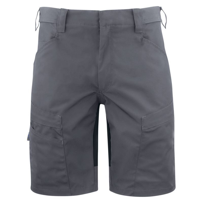 Shortsit, joissa joustavaa kangasta takamuksessa ja haaroissa. Joustavuus mahdollistaa hyvän liikkuvuuden. Kaksi vetoketjullista reisitaskua. Kaksi läpällistä takataskua. Leveämpi vyölenkki, joka estää vyön painamisen. Paikat riipputaskuille.