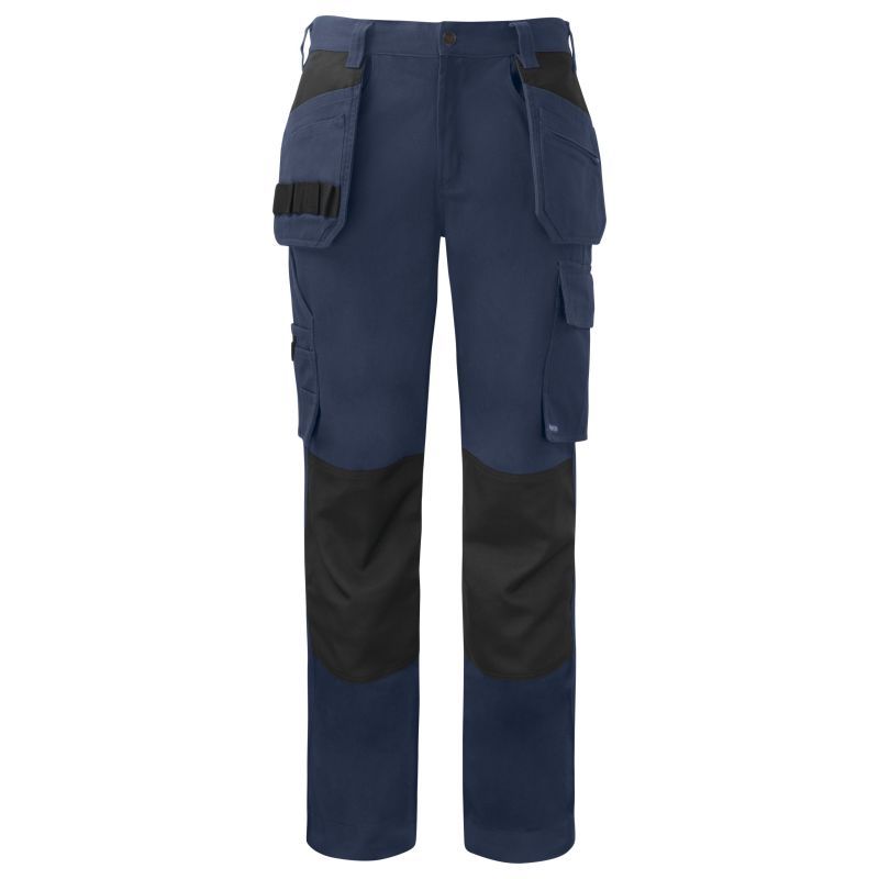 Kestävästä, kevyestä puuvillasta valmistetut housut. Riipputaskut, joissa lisätasku ja vetoketjullinen piilotasku. Läpälliset takataskut, joissa tarrakiinnitys. Mittatasku, jossa puukkonappi. Polvisuojat voidaan säätää kahdelle eri korkeudelle. Vahvikkeet riipputaskuissa, mittataskussa ja polvisuojataskuissa. Kokoja C42-C64 voidaan pidentää 5 cm.