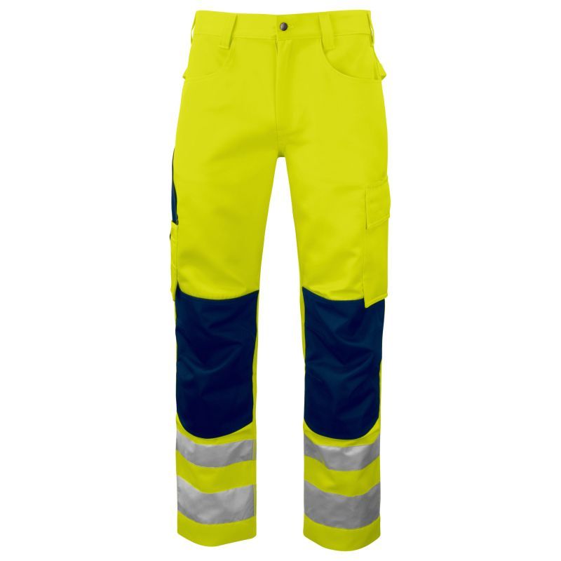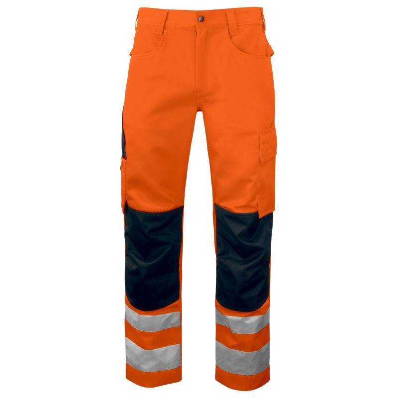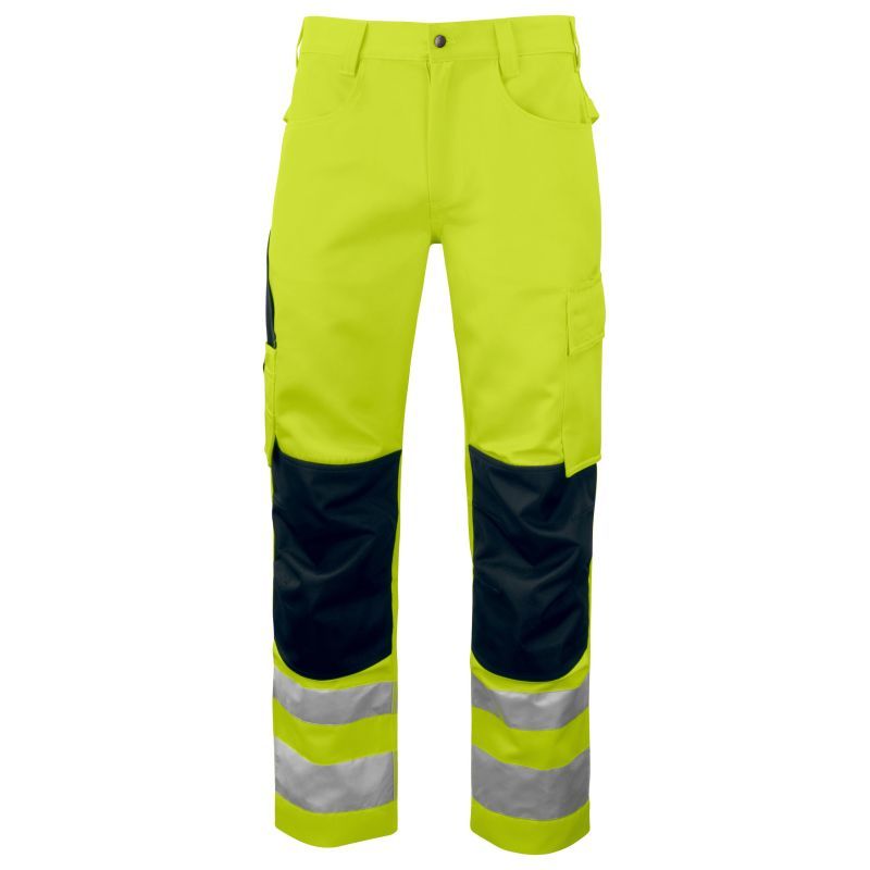 Helppohoitoisesta polyesteri-puuvillasekoitteesta valmistetut huomiohousut, jotka säilyttävät muotonsa ja värinsä. Läpälliset takataskut, joissa tarrakiinnitys. Reisitaskuissa paikat puhelimelle, kynille ja työkaluille. Mittatasku, jossa puukkonappi. Polvisuojat voidaan säätää kahdelle eri korkeudelle. Vahvikkeet mittataskussa ja polvisuojataskuissa. Kokoja C42-C64 voidaan pidentää 5 cm.