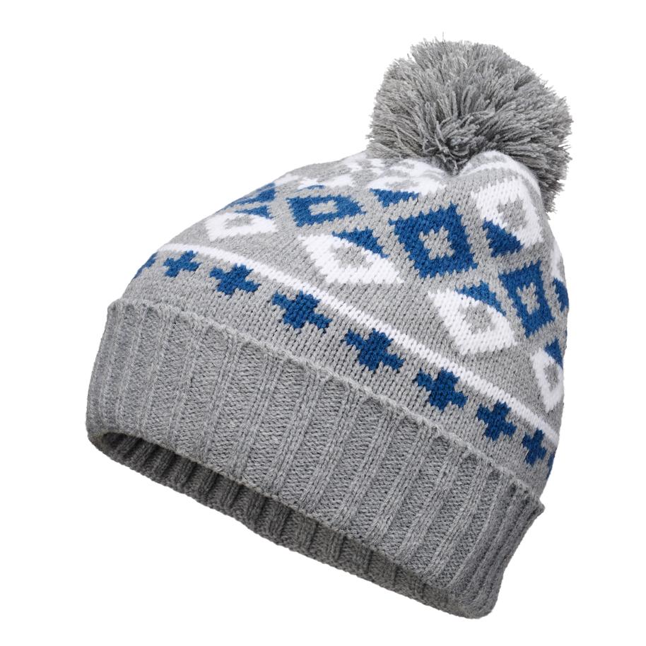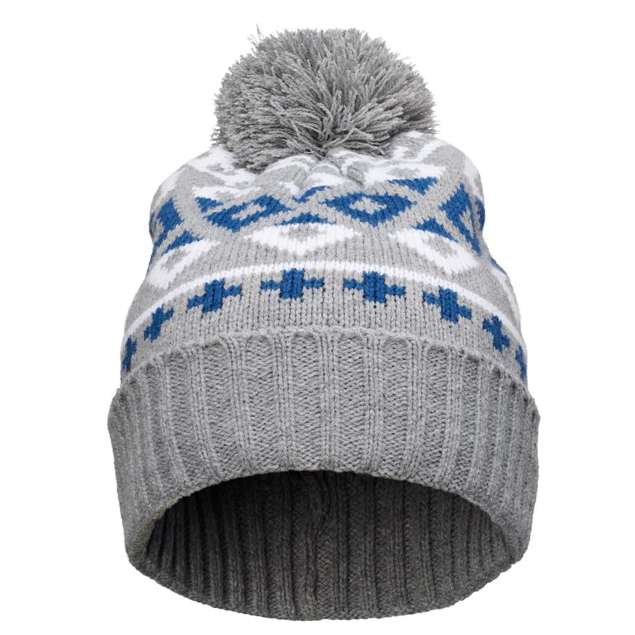 Lämmin kirjoneulekuvioitu tupsupipo käänteellä. Materiaali: 100% akryyli.