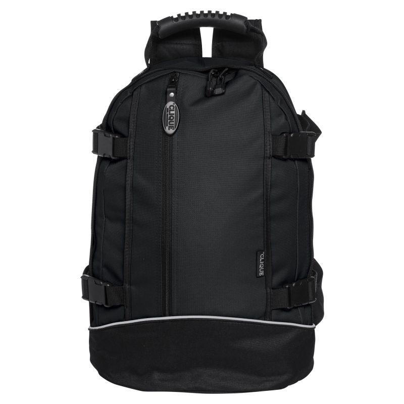 Käytännöllinen monitoimireppu, jossa on runsaasti tilaa. Repun molemmilla sivuilla on säädettävät hihnat ja heijastavat tereet. Repussa on vetoketjullinen tasku etupuolella, paljon pieniä käytännöllisiä taskuja, erillinen kännykkätasku sekä tukeva kumipintainen kantokahva. Kantohihnojen pituus on säädettävissä ja hihnat sekä selkäosa on pehmustettu. Koko: 46x28x13 cm, 16 l
