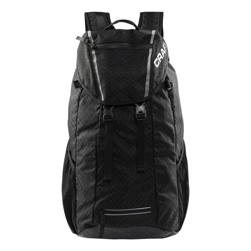 Kestävä 35 L reppu, jossa useita käytännöllisiä ominaisuuksia. Elastinen verkko kypärälle, tietokonetasku ja sadesuoja.