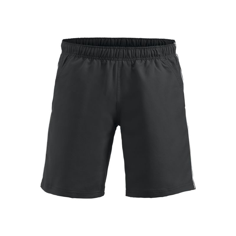 Urheilulliset shortsit kontrastiraidoilla. Klassiset värivaihtoehdot. Vetoketjulliset etu- ja takataskut. Verkkovuori. Kiristysnyörit vyötäröllä.
