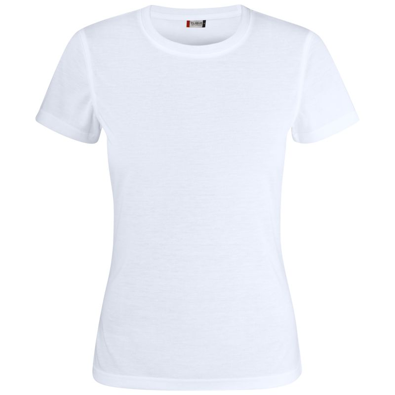 Moderni tyköistuva T-paita on puuvillantuntuista polyesteriä. Paidassa on sivusaumat, kaksinkertainen kaularesori ja niskanauha.