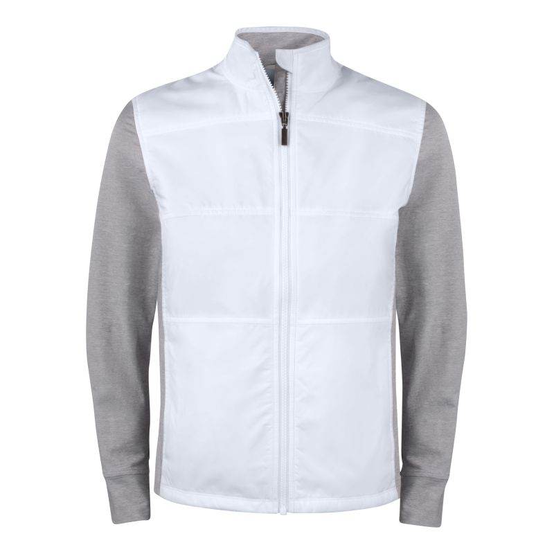 Urheiluhenkinen vetoketjulla varustettu takki on rento ja siisti ja käy monenlaiseen vapaa-ajan viettoon. Takissa yhdistyvät kevyestä ja pehmeästä materiaalista valmistetut hihat ja selkäosa ja kudottu etuosa, joka suojaa tuulelta ja pitää kehon miellyttävän lämpimänä. Sopii hyvin kauluspaidan tai pikeepaidan päälle.